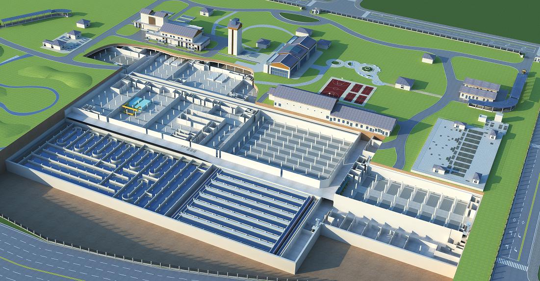 地埋式污水处理厂采用地埋式设计和集约化布局,将几十个功能各异的工艺组团化、集成化,组拼成预处理区、污泥区、生化区、膜区等6个矩形模块,错高层叠于地下两层空间,不同构筑物共用墙体和设备,中间布置行车通道、检修通道和综合管廊,少量辅助建筑物建设在地面,大大提高了土地利用效率,节约了地下空间也释放了地面资源,把开阔空间留给城市和人民。广州水投集团广州净水公司总经理李子逵告诉记者:按照传统模式,新建8座污水处理厂、156万吨/日总规模,需要用地120公顷,而实际上这8座厂总规划用地约80公顷,比传统地面模式节地约30%。“节约土地资源就是创造金山银山。”李子逵说。