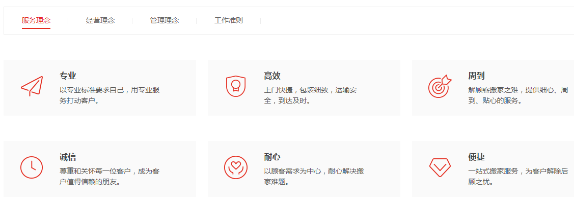 服务理念是专业、诚信、高效;工作准则是不延误、不失信……