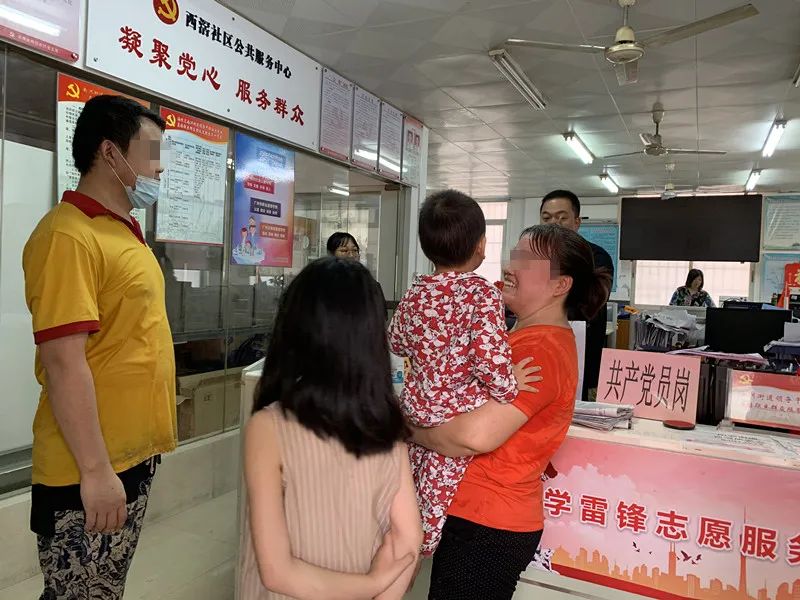 与此同时,党员们也在通过微信群、朋友圈等途径,动员社区居民帮忙寻找小孩父母,并向南洲街派出所报警。终于在上午10点多的时候,联系上了小孩的家长赵先生夫妇。