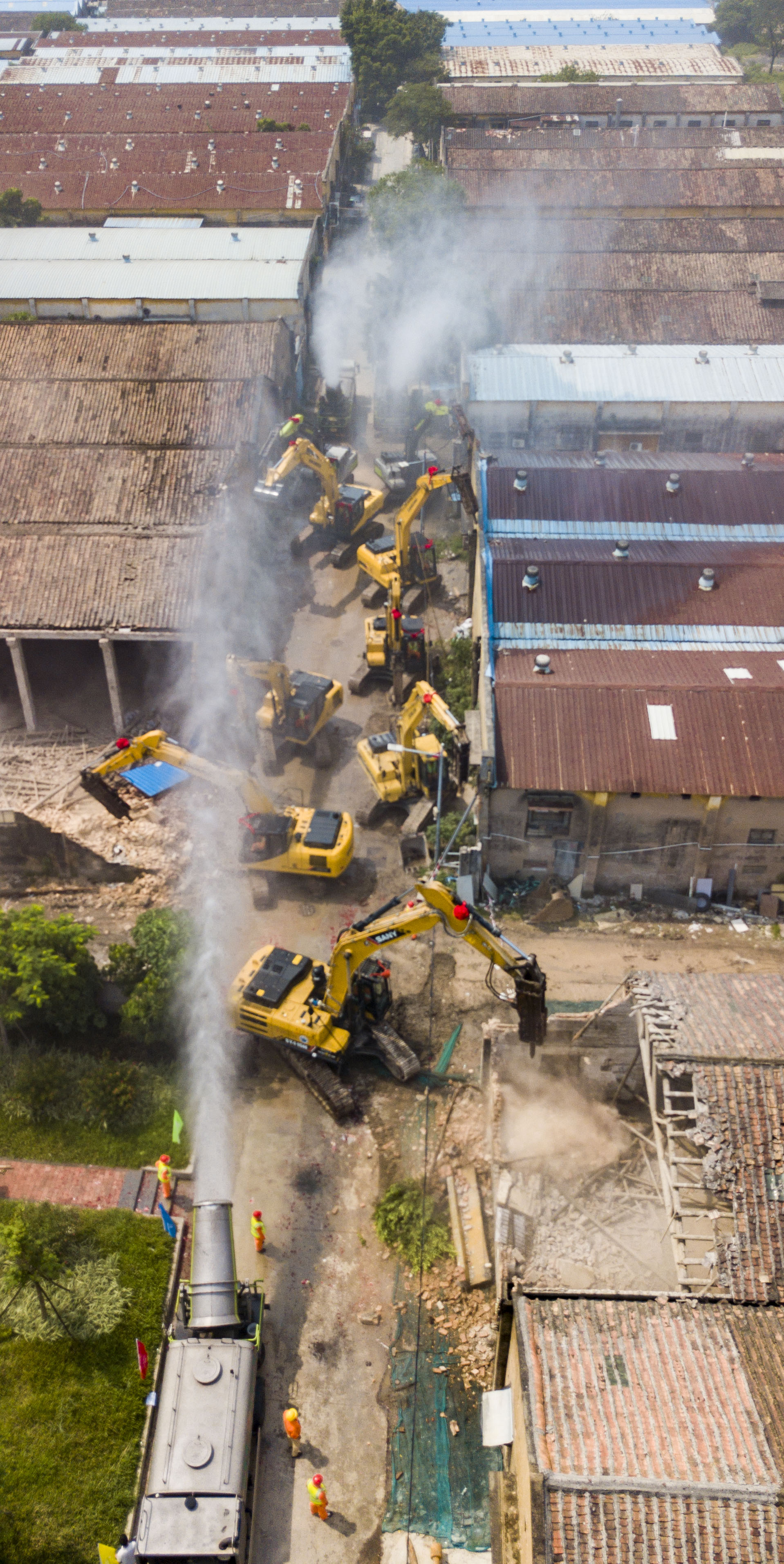 9月3日上午,广州市荔湾区大坦沙岛北岸沙头顶锣鼓喧天,随着三声礼炮响彻云霄,十余台挖掘机轰鸣开动,河沙村房屋拆卸工作正式拉开帷幕。大坦沙在2009年底启动全岛更新改造,近十年过去,终于迎来开拆这一天。