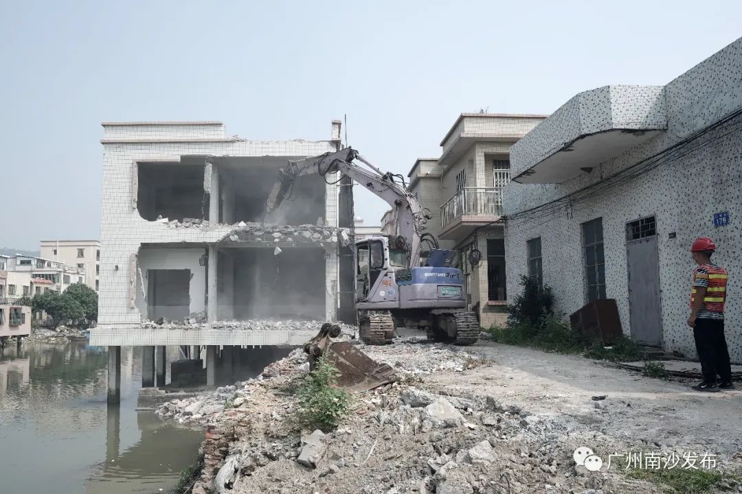 当天,南沙街组织开展河涌拆违行动,对工业区涌、南横涌、鹿颈涌、大涌涌、广隆涌等5条河涌沿岸的10处违建进行集中拆除,拆违面积达1980平方米。