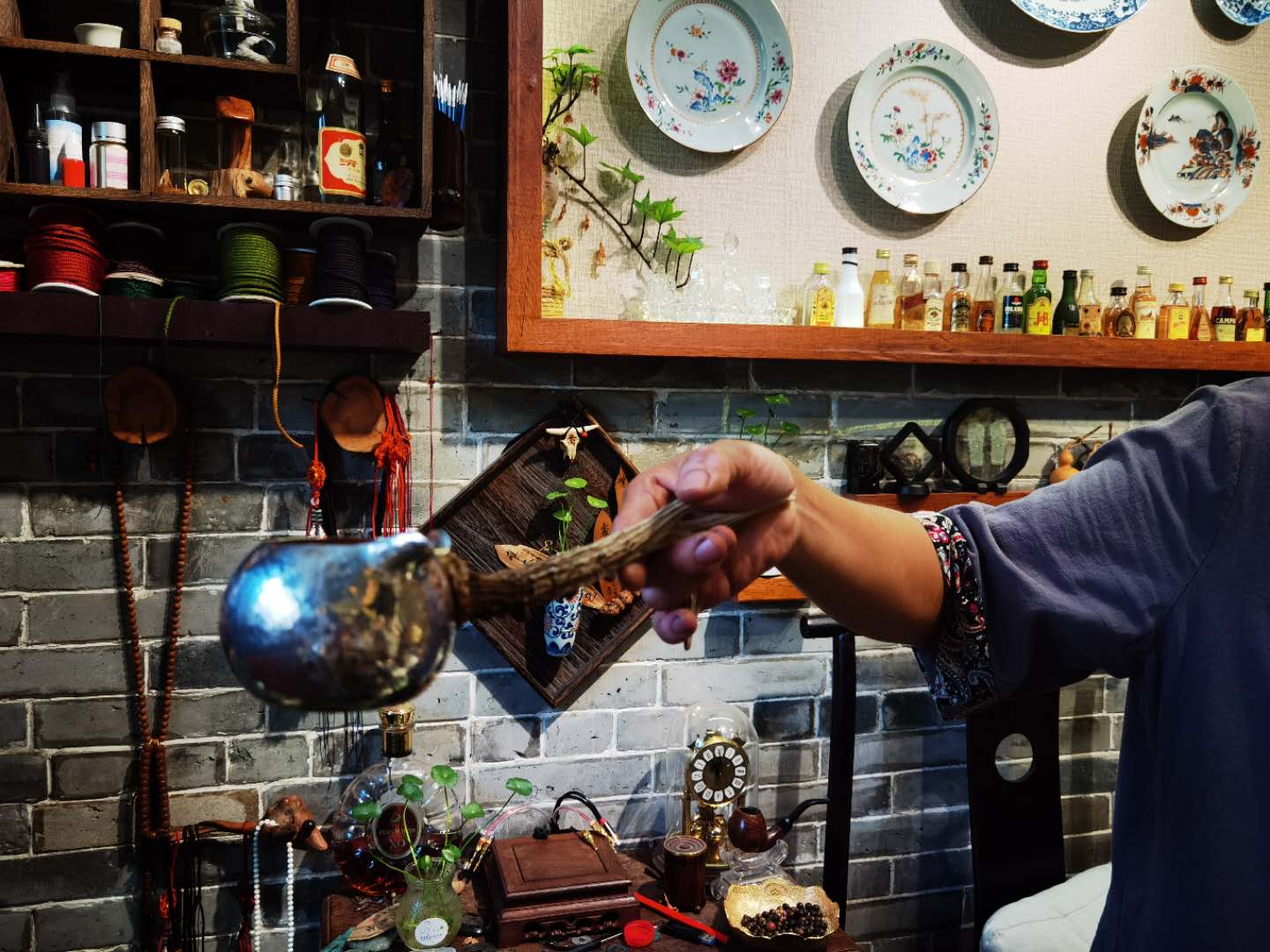 精緻小店打造咗唔少微景觀。齊雅集嘅店主人齊峰,經常喺店裏面為遊客同居民展示瓷器修補手藝,佢隨手攞起一個精心修補好嘅紫砂壺,向記者展示紫砂壺修補嘅技藝:「宜家越嚟越多遊客到泮塘五約行街,好多係專程嚟嘅,不特指是遊客,仲有唔少街坊,行過路過都會入嚟傾下偈。」齊峰說,自從將小店開入泮塘五約區域之後,人氣就慢慢旺起來身,雖然前幾個受疫情影響遊客少咗,但呢兩個月到店嘅遊客明顯增加:「我估算下,每日喺我店門口影相打卡嘅至少有200幾人,周末就更多嘞。」齊峰話,進駐嘅小店都各有特色,社區喺篩選小店嘅時候都會考慮到差異化,各家店主亦都會互相推薦客人:「比如有客人喺我店入邊了解銀器、紫砂壺呢些工藝品,我亦會根據客人嘅興趣點,推薦佢哋去其他小店行下,希望一個客帶動起五六家消費。」