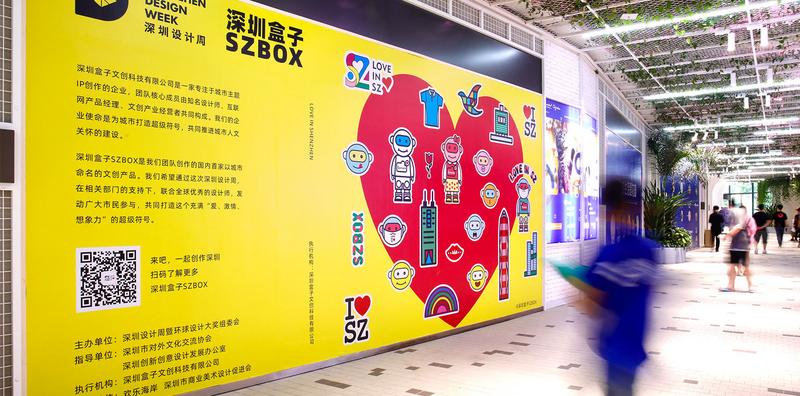 色彩明艳的设计元素、三面长度约50米的巨幅墙面,近日,作为2020深圳设计周分会场之一的深圳盒子SZBOX主题展在欢乐海岸购物中心Ogarden展出。本次展览的巨幅墙面上展示了“Love in SZ”的主题设计以及命名来自深圳的吉祥物IP Sensen和Zenzen。
