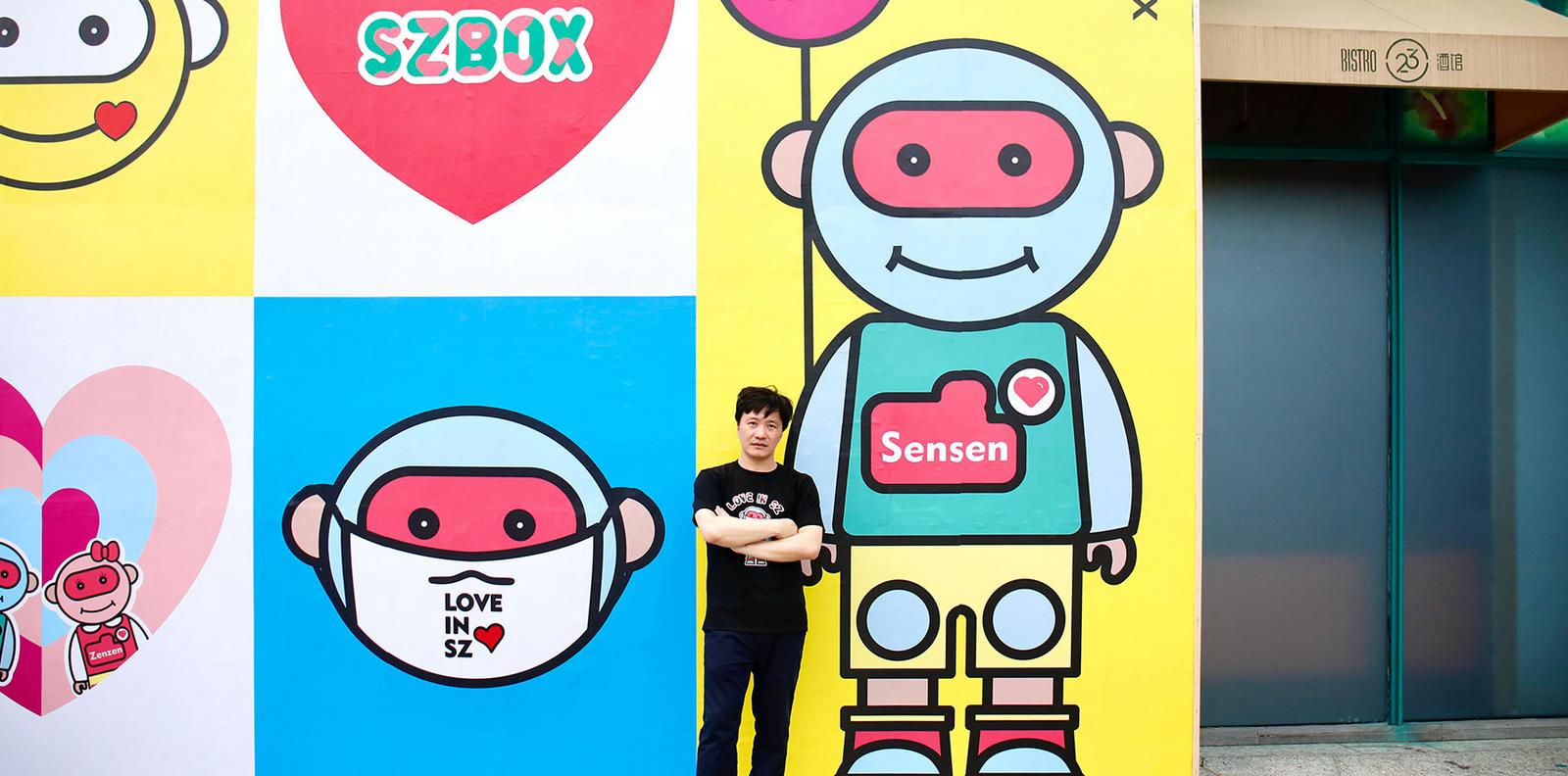 吉祥物Sensen和Zenzen的命名来自于深圳(Shenzhen),它们像每一个在深圳奋斗的年轻人,心中有爱,眼中有光,一切皆有可能。此次主题展还专门设置一面墙体展示了Sensen的40个不同表情,快乐、生气、难过、无奈……千变万化的神态,唯一不变的是炯炯有神的双眼,这诠释了SZBOX团队的创作理念——“不管生活给予你什么表情,请永远保持内心的热爱、希望和光”。