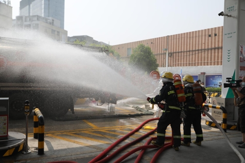 “油罐车卸油管脱落了,跑油啦!油罐车跑油啦!请立即启动应急预案,停止营业,疏散车辆人员,取沙袋堵截漏出的油品!”这是广州市越秀区组织开展2020年加油站应急救援演练的一幕。3日,广州市越秀区在瑶台加油站开展2020年越秀区加油站应急救援演练。