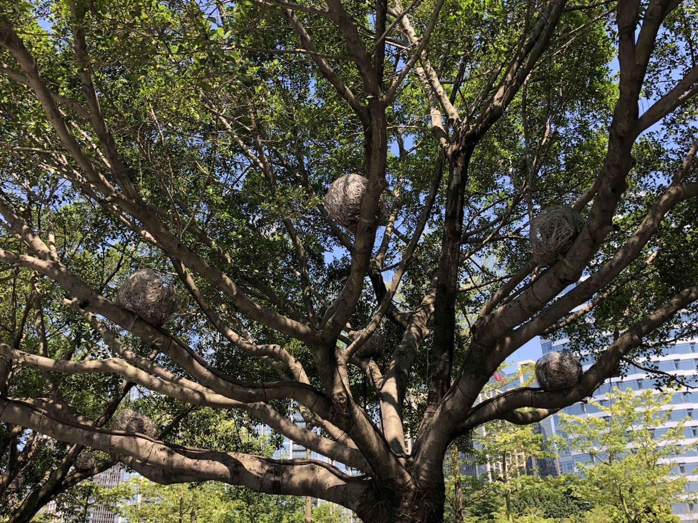 在迎宾大道沿路的两侧添加植物照明及“仿生”的造型鸟巢灯具,乍看上去就像一个鸟巢,鸟巢缝隙中漏出的灯光像自然光一样不刺眼,又与行道树自然统一,让二沙岛显得更加“生态、自然”。