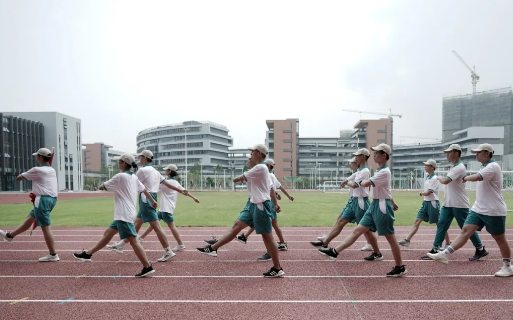 9月4日,随着教官们此起彼伏的口令,广州市第二中学南沙天元学校的初中、高中新生正在校园里参加新学年的军训。