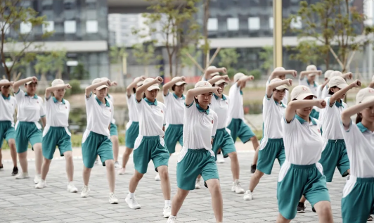 除国旗班外,其他参加军训学子均以班级为单位,或在练习站姿、或在练习齐步走和正步走、或在进行队列练习、或在高唱昂扬的军歌......值得一提的是,每个班级在军训时,班级相关负责老师都会在旁陪同,共同成长。