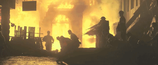 电影里最感人的一幕莫过于陈树生领头绑着手榴弹跳入敌阵与日军同归于尽。此时,四行仓库对岸,一句“国人皆如此,倭寇何敢?”,就像一颗强力催泪弹,让观众的眼泪更汹涌喷溢。