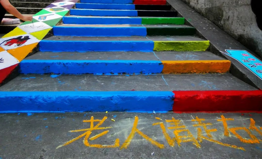社区是人住的,路是人走的。从居民的需求出发,提升人文关怀度,把社区养老公共空间搞得安全一些、舒适一些,社区的温度就上升了。社区养老公共空间“适老化”微改造从绘制彩虹步道开始,但未结束。我们在此提倡:外卖小哥、快递小哥、上班族疾行走阶梯的左侧,将最右侧靠近墙壁或者扶手的一侧,留给长者们慢慢走……