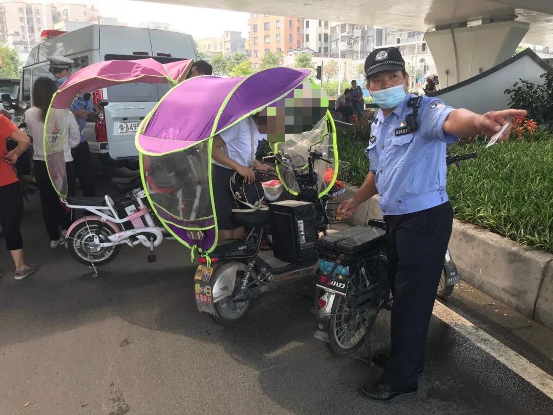 ▲民警对逆行行驶的机动车与非机动车驾驶人进行安全出行警示教育并依法处罚。