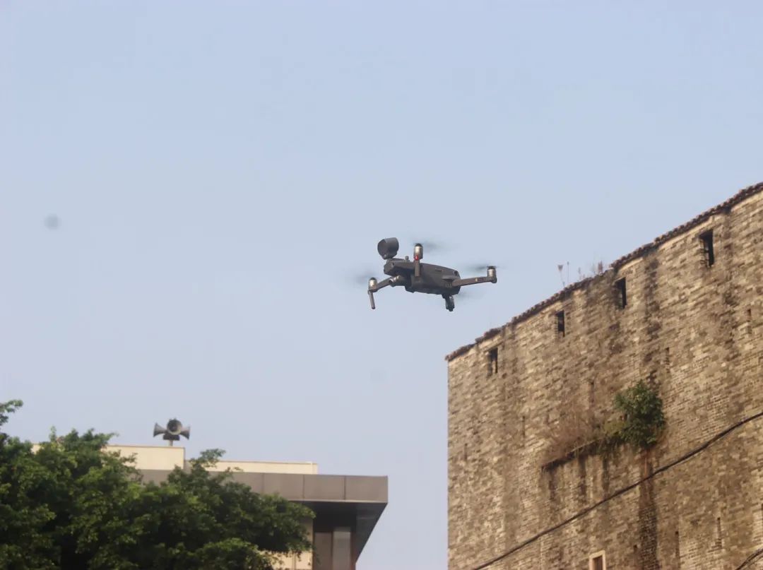 ▲太平派出所民警利用无人机对交通安全常识进行宣传。