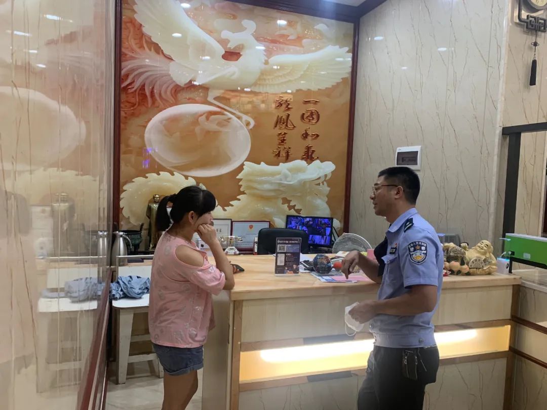 ▲太平派出所民警在太平镇辖区酒店、公寓、出租屋开展文明交通宣传教育活动。