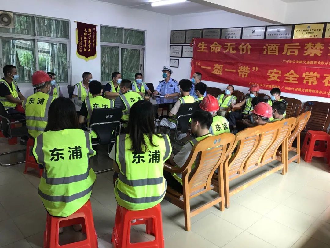 ▲广州交警从化大队二中队在企业宣传“一盔一带”和禁止酒驾醉驾。