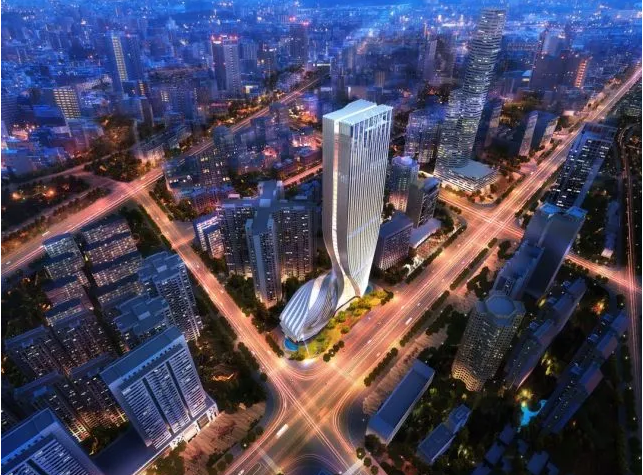 项目坐落于宝安中心区,塔楼整体采用了流线化的锥体造型,辅以结构元素作为立面肌理,垂直线条和自下而上逐渐收分的曲线相结合,形体优雅大方,富有活力,既可保证办公布局的高效性,又能满足让塔楼主导天际线的设想,充分体现世界领先卫星科技企业的创新精神。