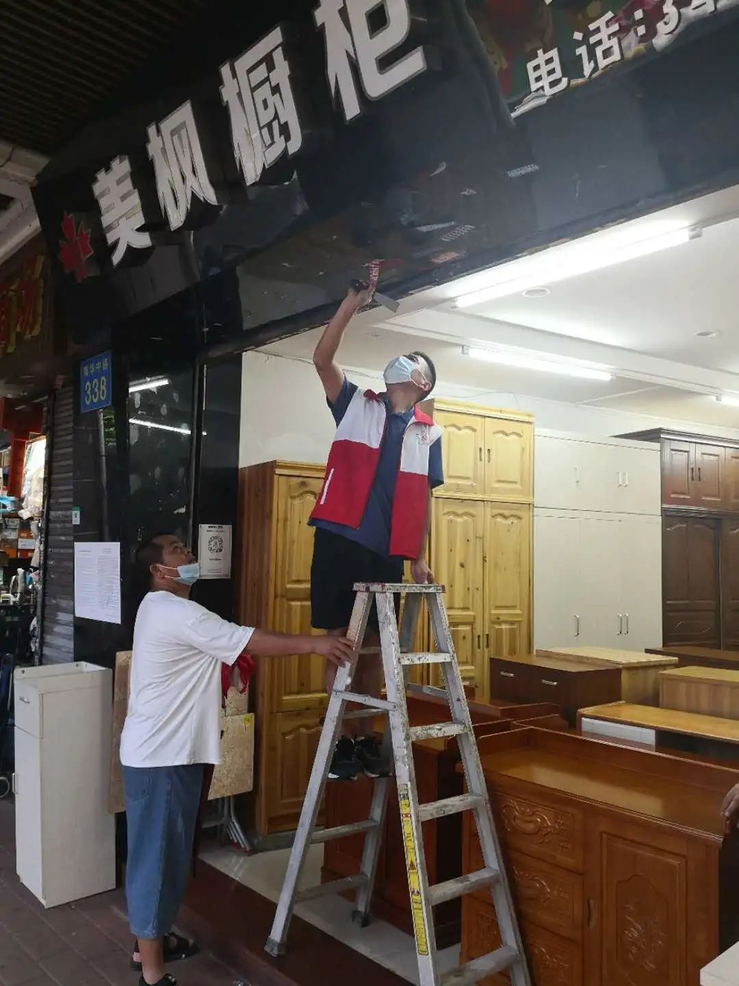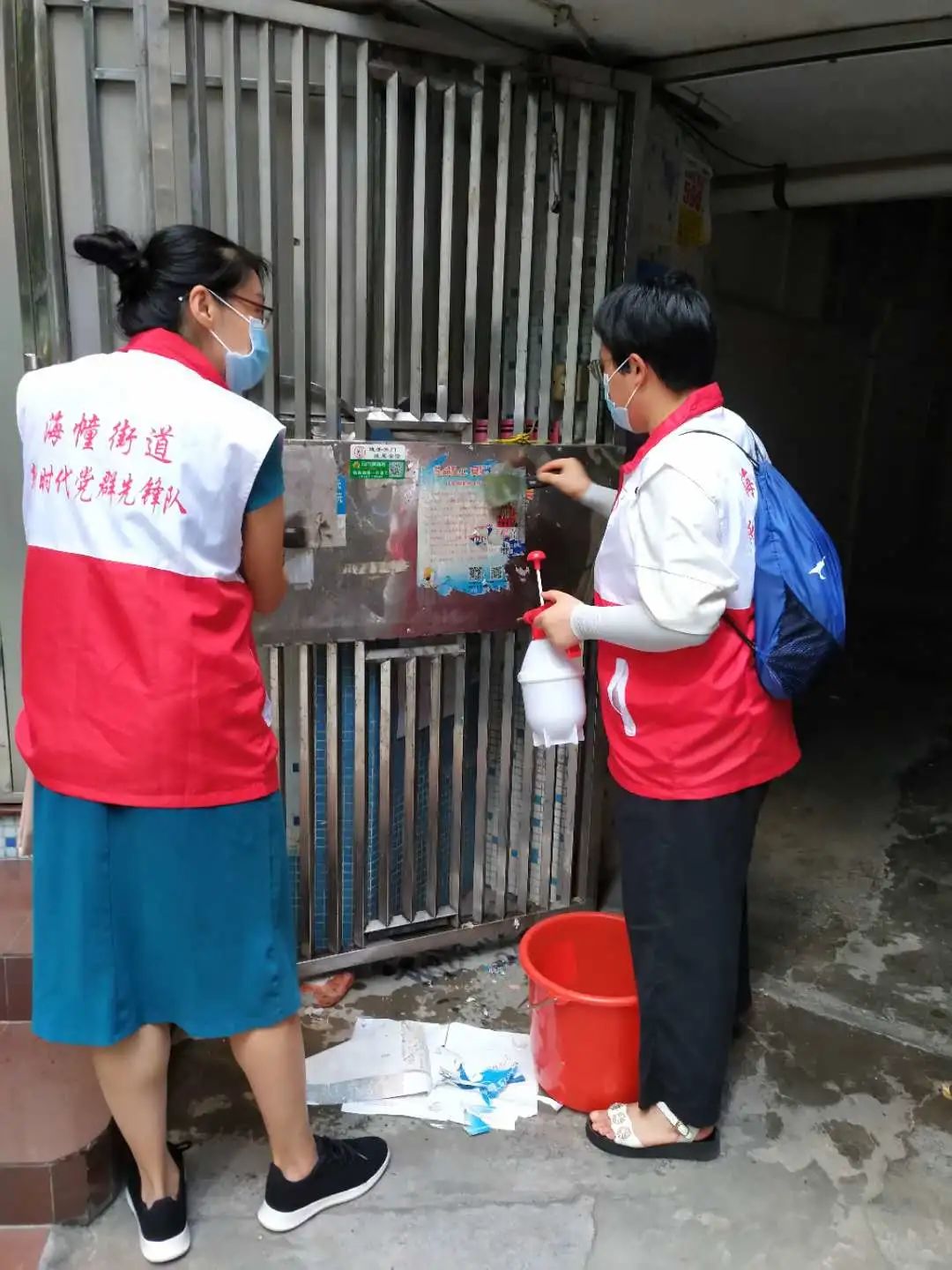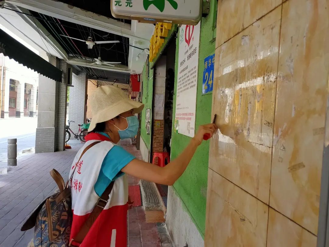 在社区的街头巷尾,志愿者和党员们对墙体、背街小巷的电线杆、小区楼道、建筑物及构筑物围墙(围挡)上张贴和书写的非法广告(“牛皮癣”)进行重点清理清除,对乱贴、乱画、乱挂进行清理清除,不留死角。