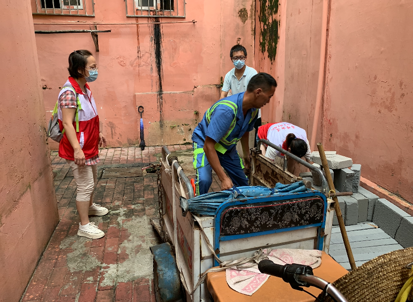 在小区中,志愿者清理了长期堆放楼道中的杂物,并向居民开展垃圾分类宣传和环境卫生整治介绍,呼吁居民做好垃圾分类,不要乱扔垃圾,爱护居住环境卫生整洁。