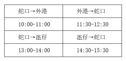 記者從蛇口郵輪母港獲悉,9月10日起,蛇口郵輪母港將正式恢復運營蛇口至澳門的高速客輪航線。9月10日至13日,每天2個航班往返澳門外港和澳門氹仔碼頭。具體航班時間如下: