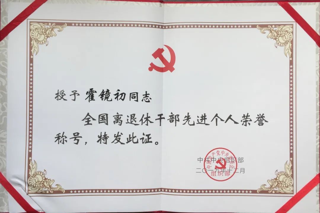 9月7日上午,广州市委组织部、市委老干部局在全省离退休干部先进集体和先进个人表彰视频会议结束后,在市委举行了全国全省离退休干部先进集体和先进个人颁奖仪式。根据中组部的表彰决定,广州市珠江华侨农场小学原校长霍镜初荣获“全国离退休干部先进个人”称号。