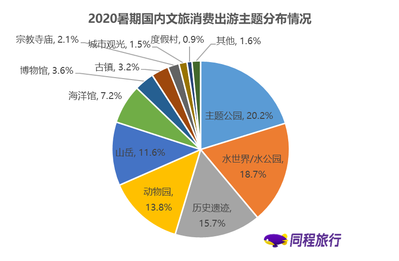 具体的出游主题方面,主题公园、水世界/水公园是今年暑期最受欢迎的两大热门出游主题,二者合并占比38.9%,与往年暑期基本一致。此外,历史遗迹、动物园、山岳、海洋馆等也是比较热门的出游主题。