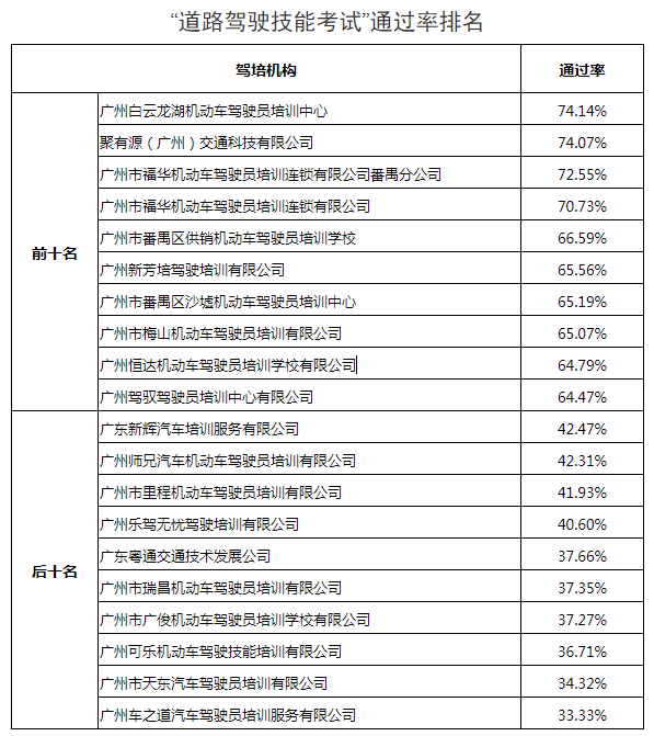 近日,广州市交通运输部门发布2020年7月广州市机动车驾驶员培训服务质量信息,公布有驾培机构道路驾驶技能考试通过率、场地驾驶技能考试通过率、交通违法率、投诉总量等排名,并且发布零投诉企业名单。同时,提醒市民务必选择广州市内合法驾校报名学车,远离无证“黑驾校”与非法中介。