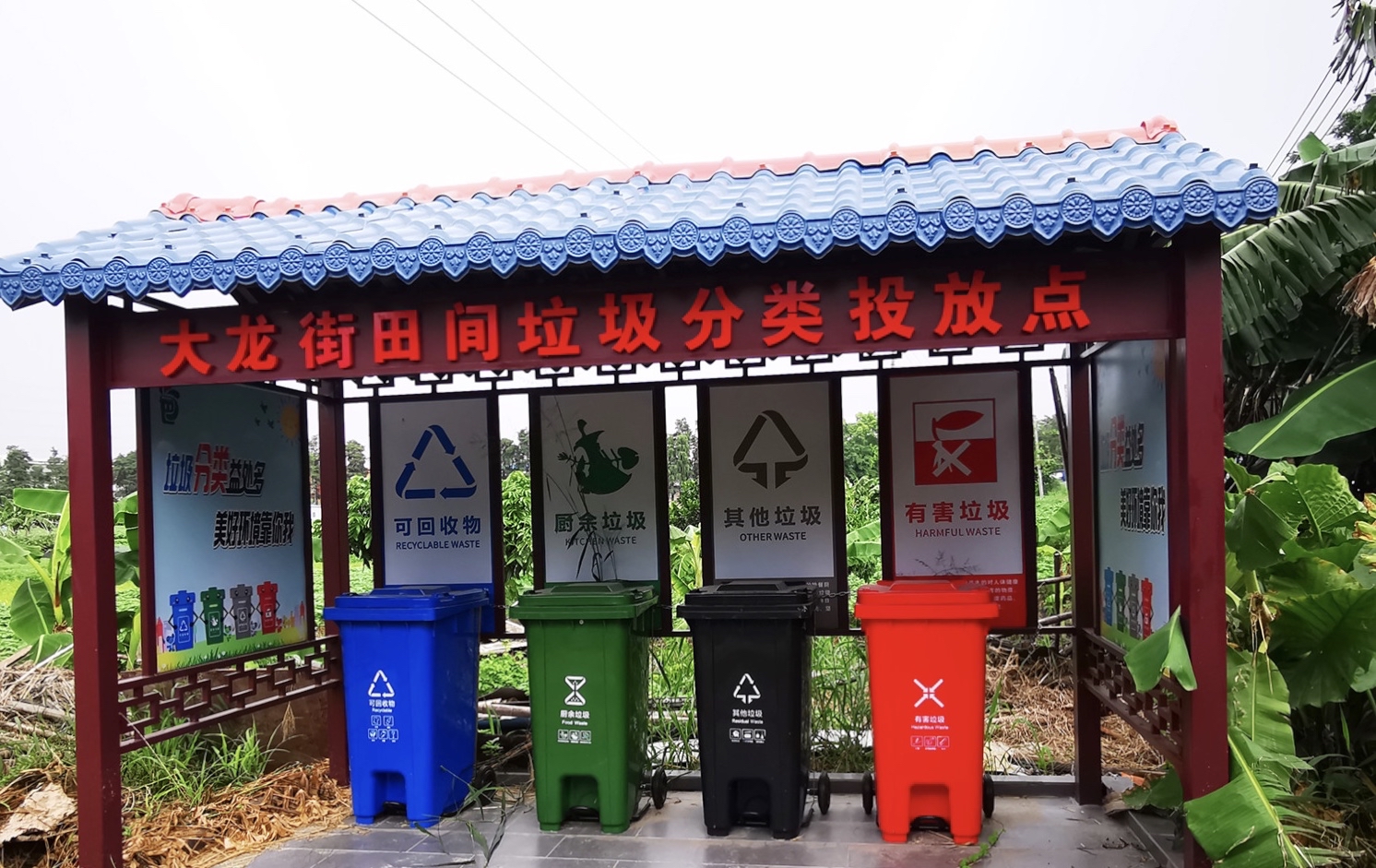 记者从大龙街有关部门获悉,目前,大龙街设置了3处“田间垃圾分类投放点”,其中,新桥村2处,沙涌村1处,每处都配置了4类垃圾桶。