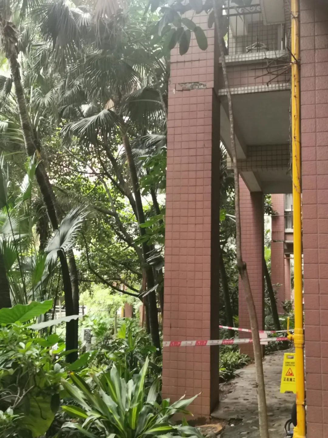 昨日,小e走访现场看到,由于投诉量大、关注度高,该小区物管已经把断裂柱子进行围蔽,并聘请鉴定公司对断裂柱子进行检测。经查,小区内共有4根柱子发生断裂位移情况,有2根位于5区3座,有2根位于7区4座、5座。