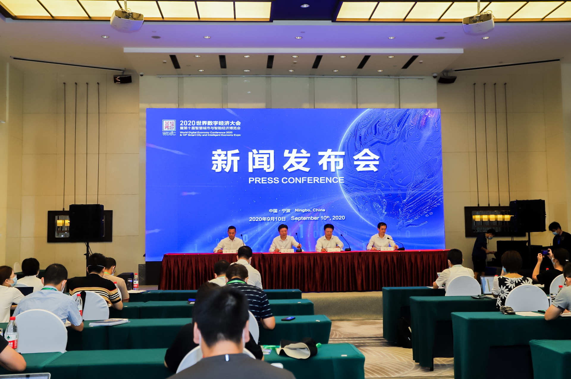 为期四天的2020世界数字经济大会暨第十届智慧城市与智能经济博览会正式启幕。9月10日上午,组委会召开了新闻发布会,宁波市副市长陈炳荣介绍了数字经济大会暨第十届智博会总体情况,浙江省经济和信息化厅副厅长厉敏、宁波市经济和信息化局局长张世方回答了记者的现场提问,宁波市委宣传部副部长、新闻办主任李贵军主持,境内外50多家媒体单位参加。