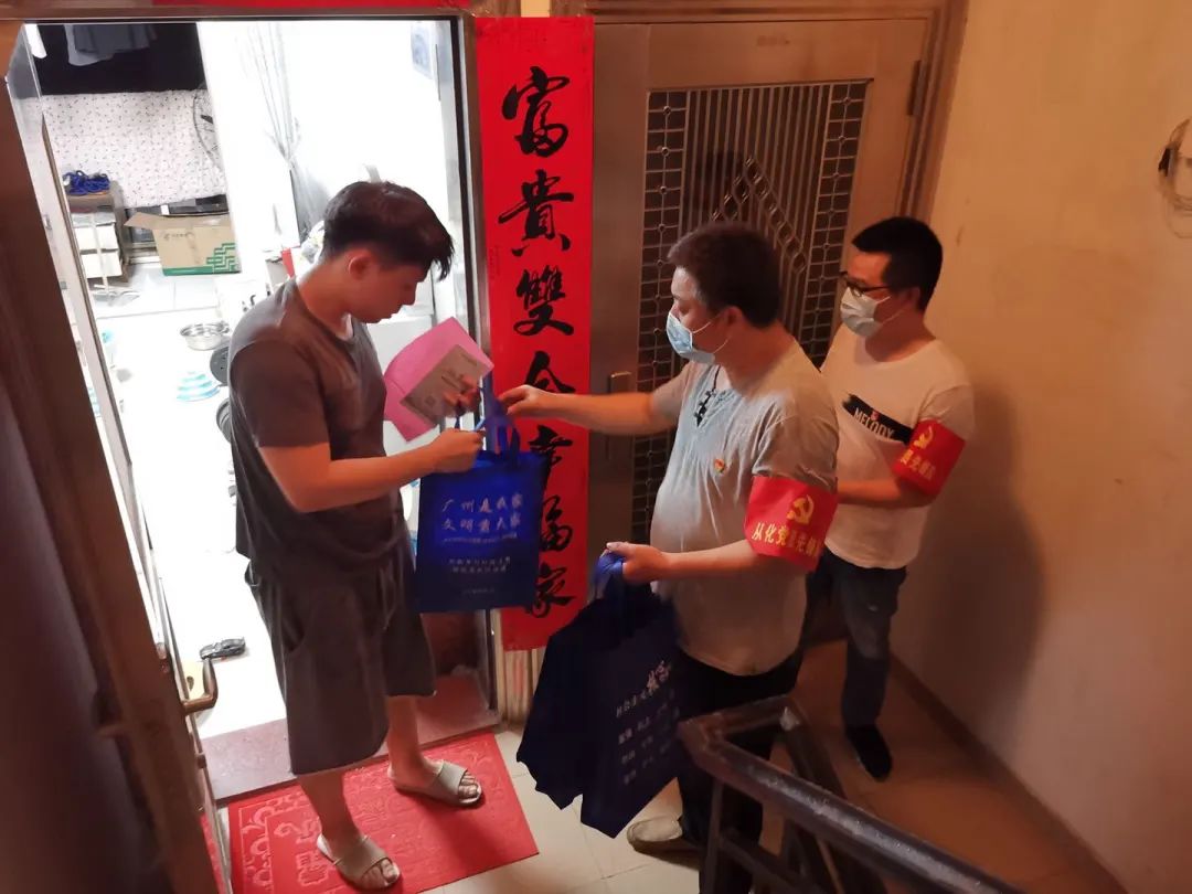 ▲社区在职党员开展“文明来敲门”入户宣传活动。