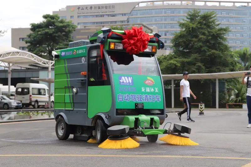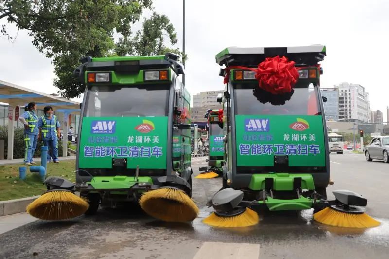 智能环卫车投入使用后,能大幅节约人工费用,从而降低环卫成本。且最长工作时间可达16小时/天,极大地降低了环卫工人的劳动强度,获得“倍乘”的清扫效益,从而更高效、更安全地提升龙湖街道的环卫保洁效益。