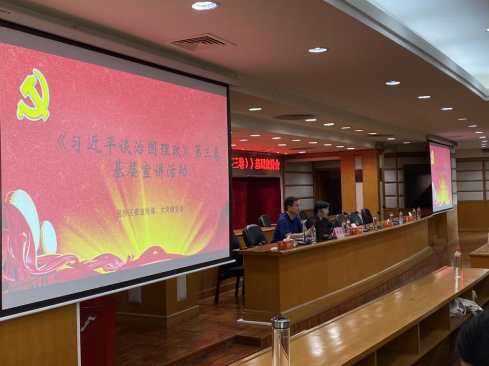 8月27日,大岗镇率先召开学习贯彻《习近平谈治国理政》第三卷宣讲会。中共广州市南沙区大岗镇教育委员会、中共广州市南沙区新沙医院支部委员会、中共南沙区直属机关工作委员会等10个报到单位党组织代表,近20名共建单位党组织党员代表,以及25个共建村居党员干部参加宣讲活动。