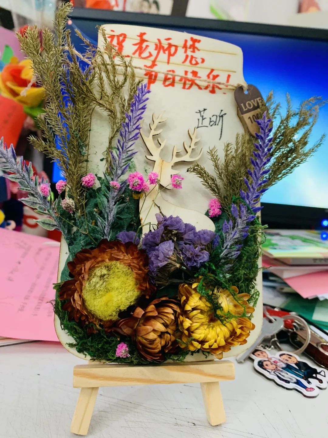 教师节到来,先烈东学子们创意百出,用美丽的鲜花、黑板板书、亲手制作的贺卡、手工花朵DIY、“好老师”证书等,给老师们带来了欢笑与幸福。学生们还在教师节留言板中写下真诚的祝愿。