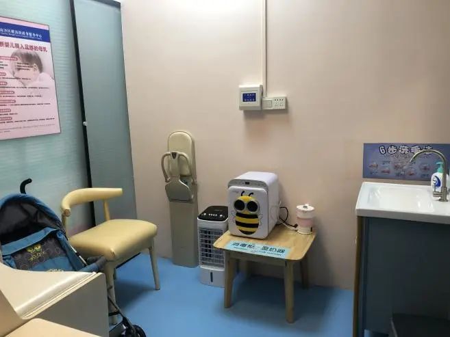 在横沥镇政务服务中心,一排干净整齐的母婴室引起了市民的注意。母婴室里配备齐全,墙上贴着母婴知识桌上还摆设着温奶器......