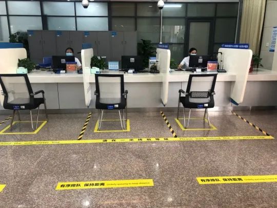 横沥镇政务服务中心内部地面标示清晰有序。