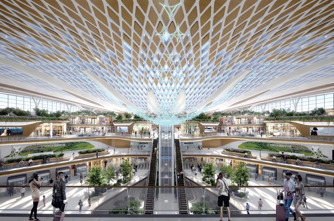 除了室内设计好看,陈雄还提到在天空俯瞰的“第五立面”设计。T3屋面采用“羊城花冠”的建筑造型,如同由花瓣组成的花冠,在飞机上的旅客未落地就先看到“广州花开”。记者了解到,在T3建筑方案的国际征集比选中,这一方案凭借出色的流程和功能设计,获得专家组的全票通过。