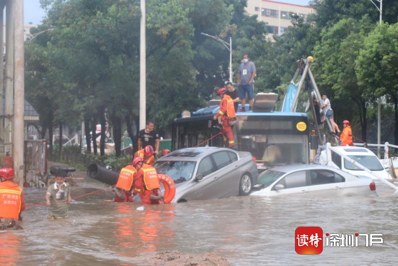 当日17时15分许,深圳市消防救援支队先后接报宝安区石岩站辖区涉暴雨被困类警情8宗,市消防救援支队立即调派宝安大队、光明大队水域救援队、石岩消防救援站及下属分队共23辆消防车128名指战员到场处置。