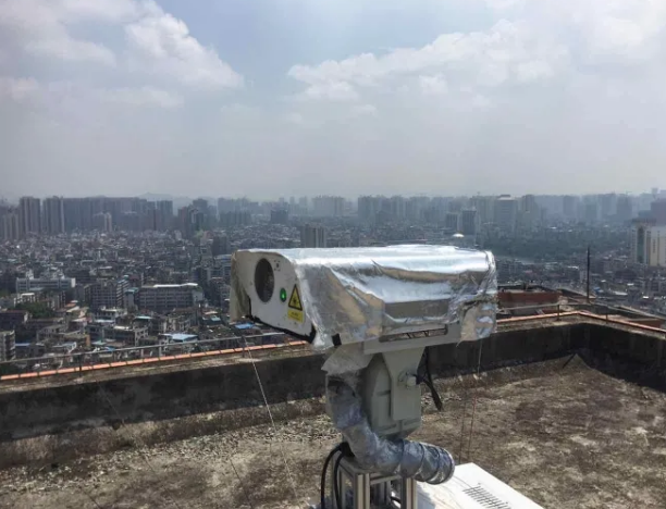 清城区旧城慧峰豪庭某栋楼楼顶上,今年七月初,一个神秘的设备悄悄安装在了楼顶上。设备样子如同一台望远镜,高约半米,全身还裹上了一层防晒膜。同样的设备,在高新区清远先导材料有限公司某栋大楼上,也安装了一台,原来这就是高能高频颗粒物激光雷达。