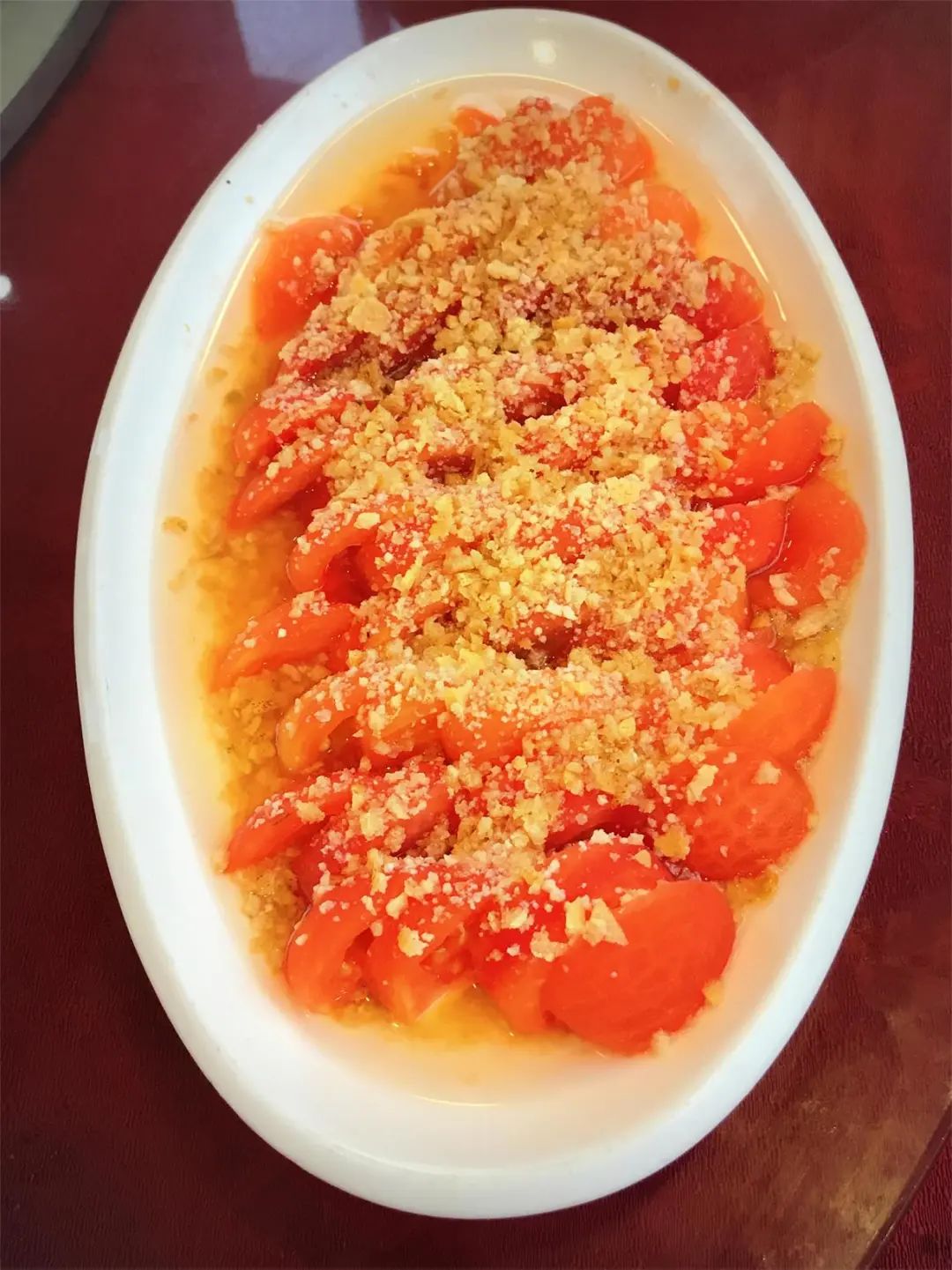 我与陈皮蒸番茄,前后遇见两次。第一次,一见倾心;第二次,二见钟情。