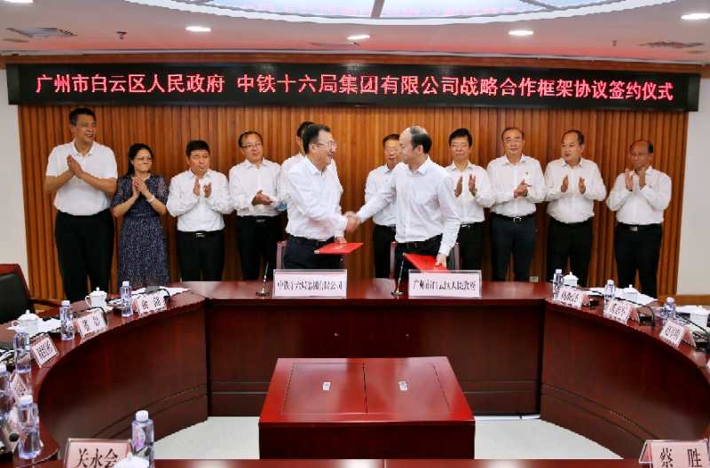 9月16日,广州市白云区与中铁十六局集团有限公司签订战略合作框架协议。根据合作协议,中铁十六局集团铁运工程有限公司及其下属企业、相关产业项目落户白云区,旨在打造轨道运营的综合性建筑企业。