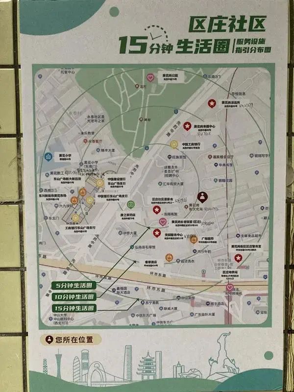 开窗可见景,出门可踏青,步行几分钟就来到医院和学校,这样方便的生活要实现啦!今日,记者从广州市越秀区获悉,黄花岗街的15个社区均打造了15分钟生活圈,同时也在各社区安装上服务设施指引分布图。