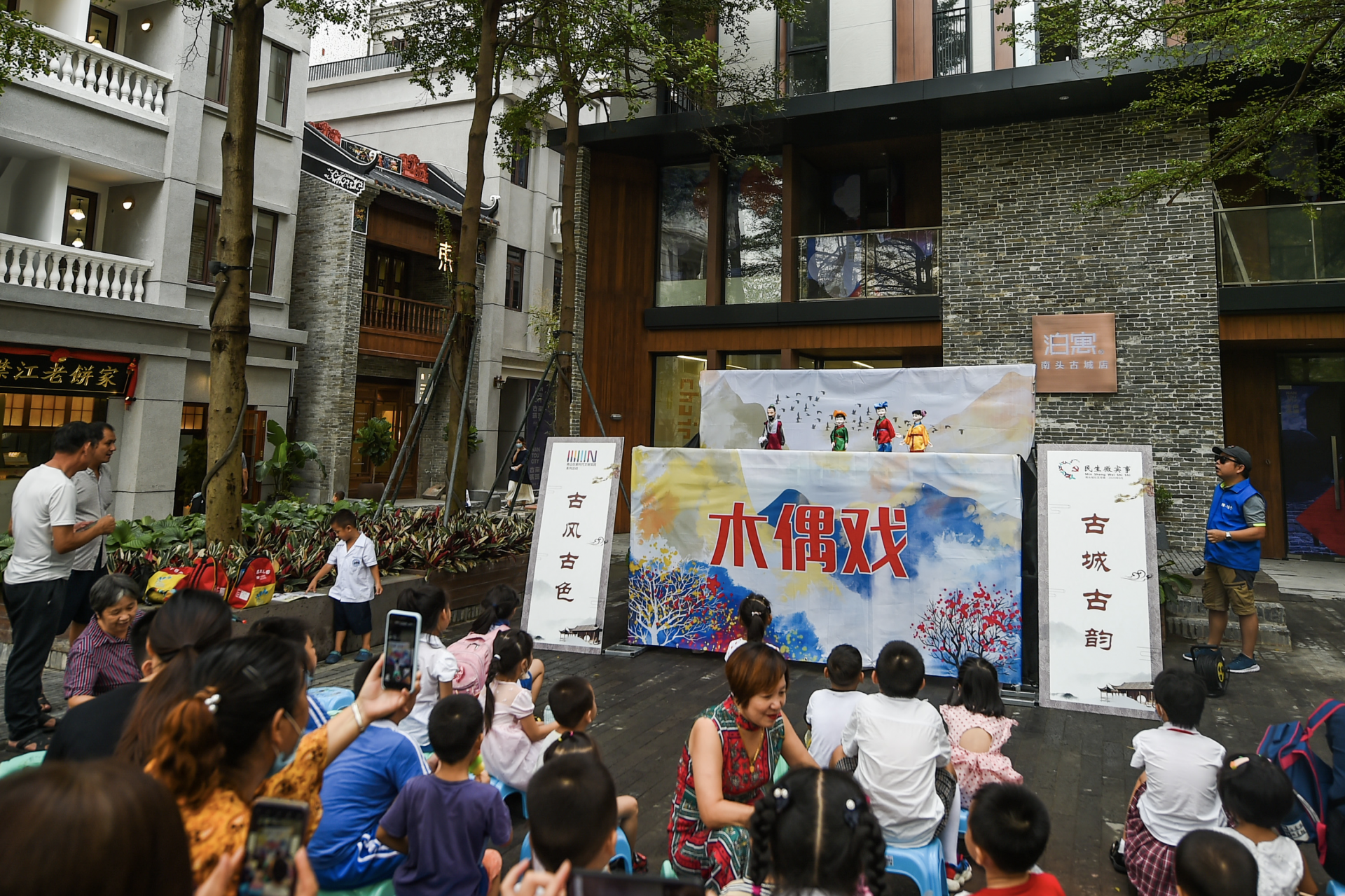 城門旁的木偶戲吸引了不少小朋友觀看。