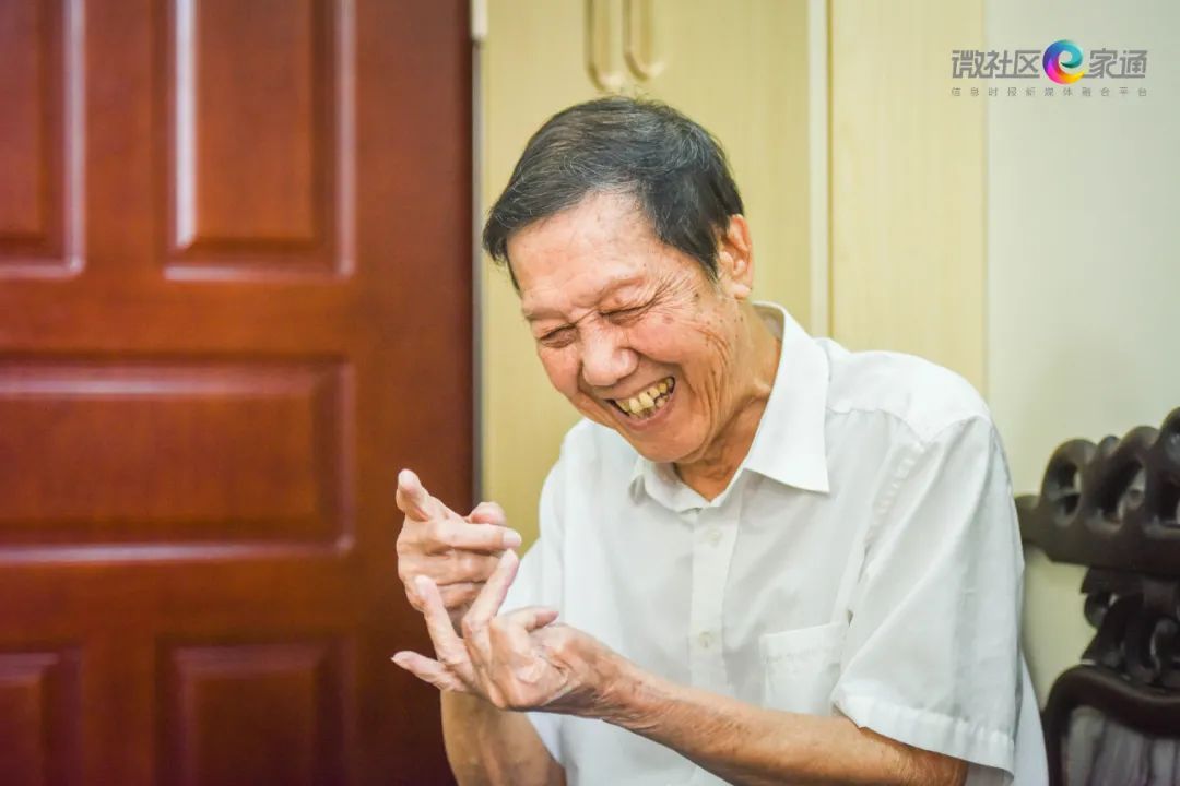 (刘绍扬说起军旅生涯的趣事时开怀大笑)