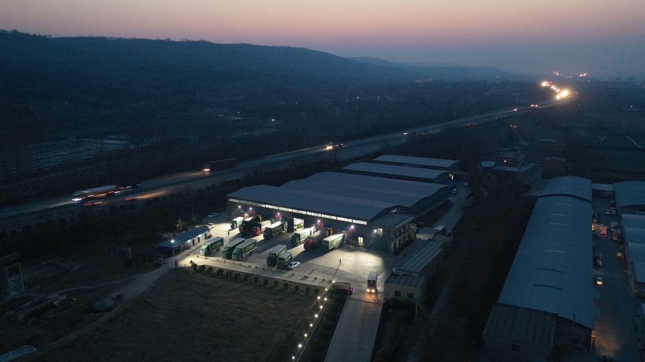▲消费者通过陕西渭南邮政的拼多多店铺凌晨下单农产品,渭南邮政连夜打单,装好货后凌晨发车。(胡伟 摄)