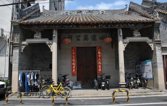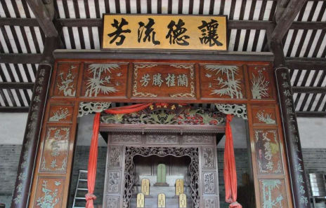 吴氏大宗祠建于清道光六年(1826),中堂前金柱挂楹联:树茂枝繁瓜绵椒衍欣逢祉宇重光物华天宝垂祖荫;德高望重源远流长喜见英才辈出人杰地灵创宏基。后堂4根木金柱,花岗石柱础,后金柱挂楹联:望族振宗风三让励后人延陵名郡千秋盛;籍箸衍珠江长怀故梅里树德堂前一脉亲。堂号为“树德堂”。