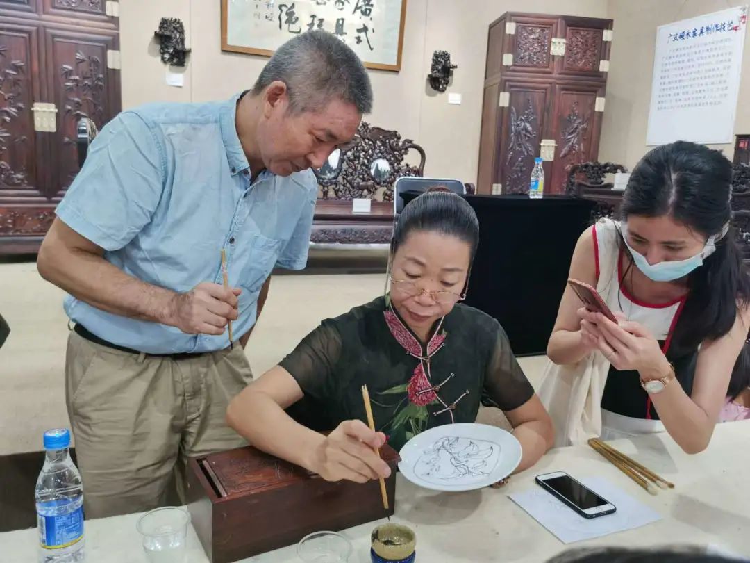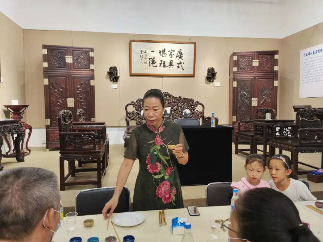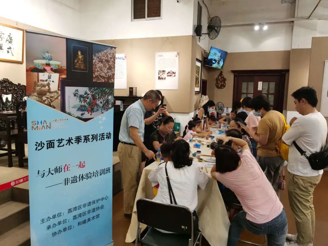 9月19日上午,由荔湾区文广旅体局主办,荔湾区非遗中心承办,荔湾区非遗协会协办的沙面艺术季系列活动之“与大师在一起——非遗体验培训班”,在沙面和曦美术馆内如约而至,本次活动,由荔湾区非遗保护中心向社会招募了十位学生参加,旨在宣传荔湾区优秀传统文化,让大家了解非遗,感受非遗。这次让大家体验的非遗项目是荔湾区传统工艺文化的杰出代表——广彩。广彩是国家级的非遗项目,至今已有三百多年的历史,广彩作品常用“金色”作锦地,行话称“织金”,所以广彩作品以其“绚彩华丽,金碧辉煌”而闻名于世。同时,广彩也是荔湾区的强势项目之一,据统计,荔湾区省级以上广彩大师数量最多。