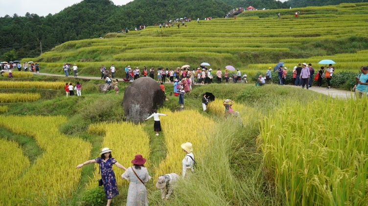 暑去秋来收获忙,遍地金黄谷满仓。9月22日,“庆丰收 迎小康”2020年广东连山云上中国农民丰收节暨丝苗米现代农业产业园云展会在连山壮族瑶族自治县太保镇欧家梯田拉开帷幕。