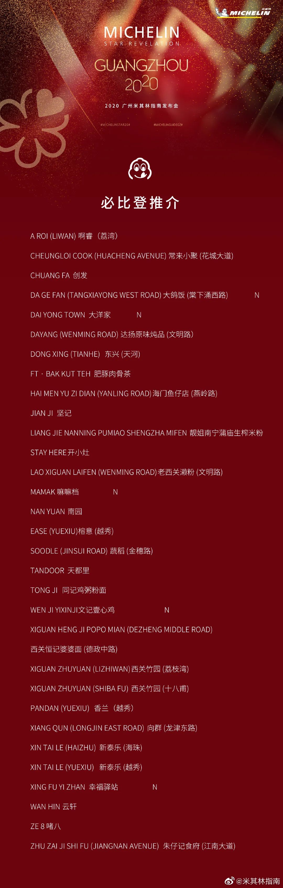 昨天上午,2020版广州米其林指南在广州正式发布!新版的必比登推介榜单、星级榜单及米其林餐盘榜单同时揭晓。快来看看新鲜出炉的榜单↓