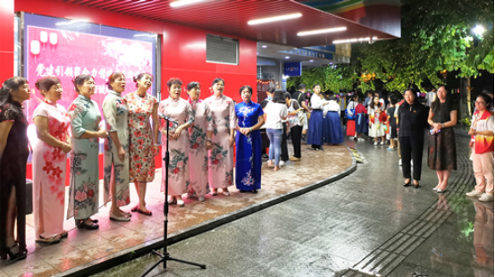 活动来到社工站门口,彩虹街的志愿者们带来了“月下广州”“我和我的祖国”以及“国标舞”三个快闪为活动增添色彩,表演吸引了不少居民观看,并带动起现场的气氛。在活动茶艺区,居民通过投壶、品尝传统美食,增进大家的交流与互动。