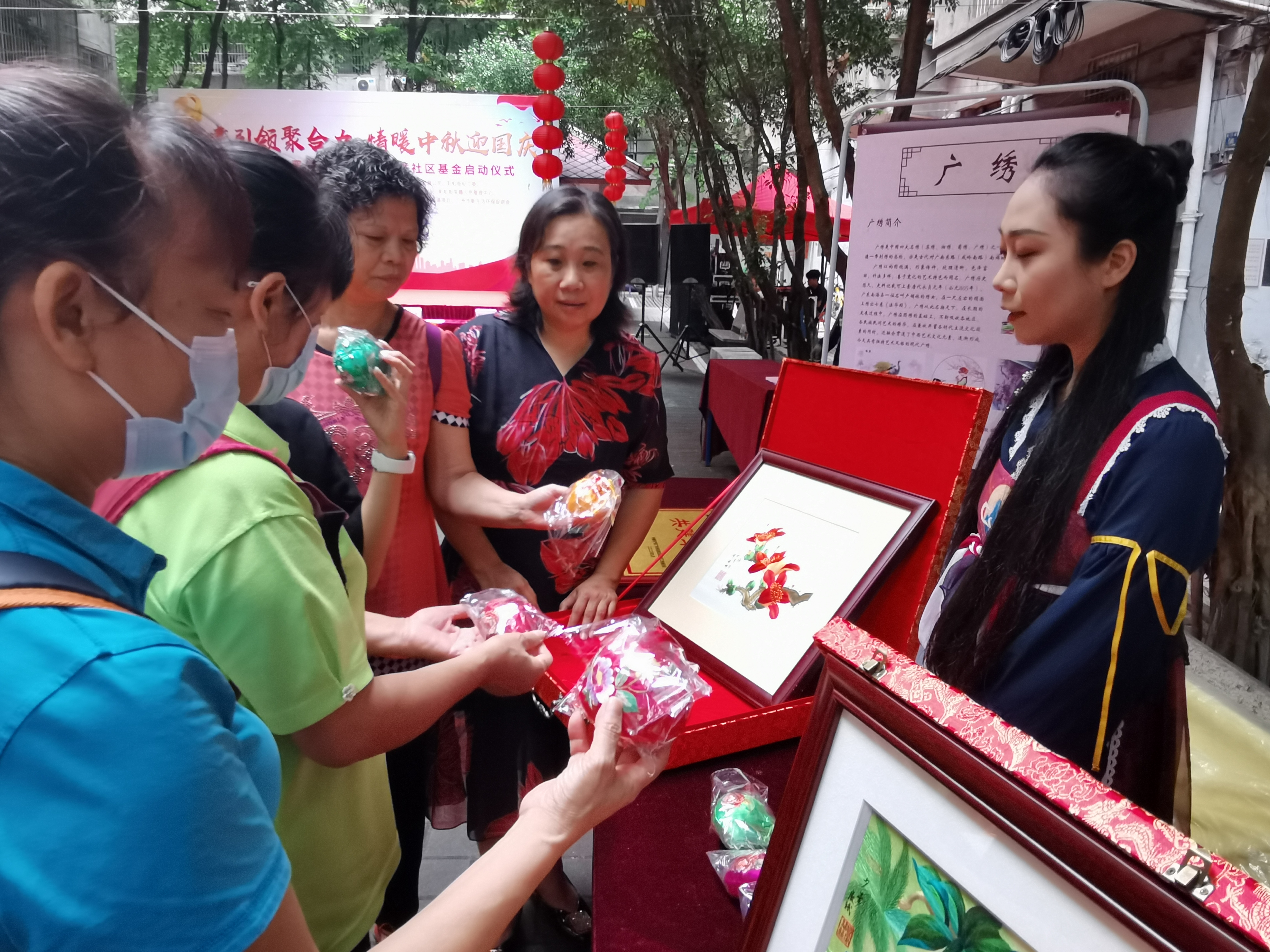 广绣市级非遗传承人李敏为社区居民现场传授广绣技艺