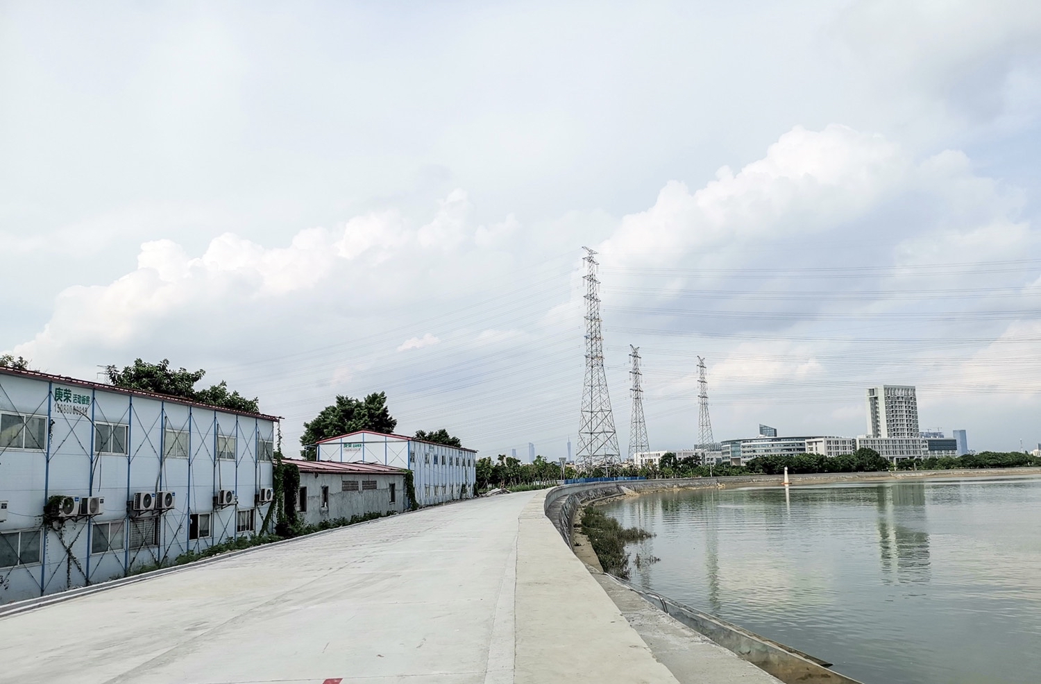 当日下午,记者在洛浦街桔树水闸至新合益水闸段堤防达标工程现场看到,三枝香水道江边新修建了一条约7.6米宽的混凝土堤顶路,长达约4公里,堤顶路迎水面修建了一道钢筋混凝土防浪墙,背坡还修建了排水沟,每隔约30米安装一盏路灯。